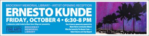 The Miami Shores Fine Arts Commission and Brockway Memorial Library kick off their 2013-14 art gallery series with an exhibit of bold and contemporary paintings of iconic Miami landmarks by Ernesto Kunde. Kunde is a self-taught artist, born in Brazil, and currently residing in Miami Shores.